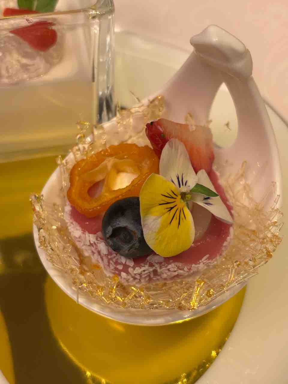 他にもパインと金柑とクコの実ものっていて、杏仁豆腐がとっても豪華なデザートになりました
