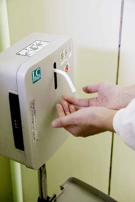 酸性電解水は、現在食材や器具の殺菌に使用していますが、全員がより効果的に使用できるように、再度講習をしていただきました。