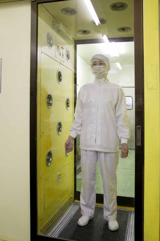 まずはエアーシャワーを浴びて、服に付着している埃等を吹き飛ばします。