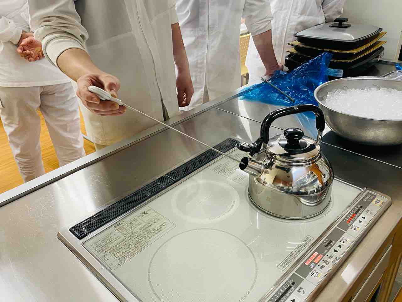 ガスコンロだとガスの熱も拾ってしまうとのことだったので、IHのコンロでお湯を沸かして測定しました。