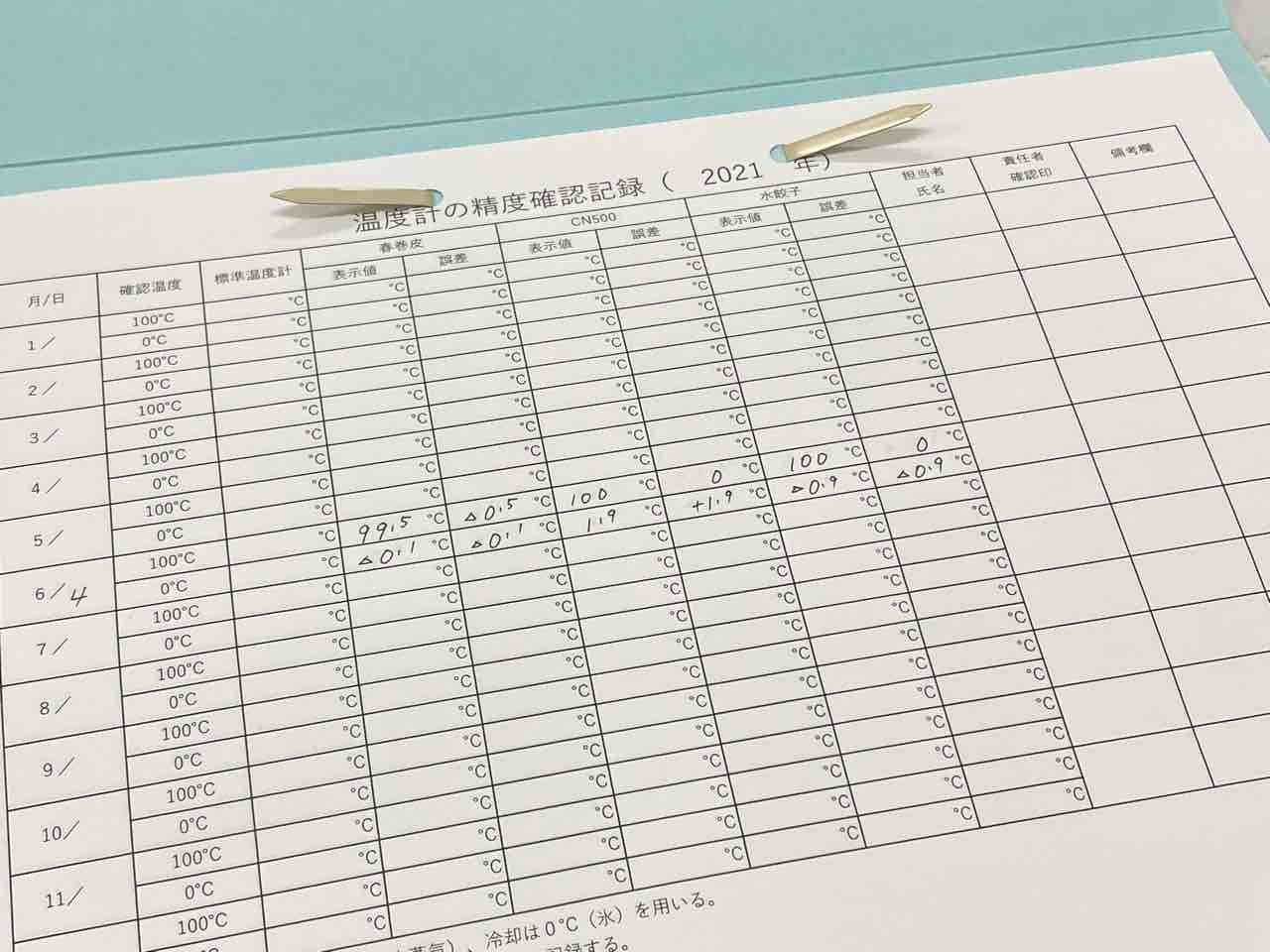 もちろん基準はその会社で決めることですが、例えば「表示誤差が2℃以内の場合は、表示値から誤差を差し引いて記録する。誤差が2℃以上の場合は、温度計を買い換える」など、明確な基準を作ることが大事です。