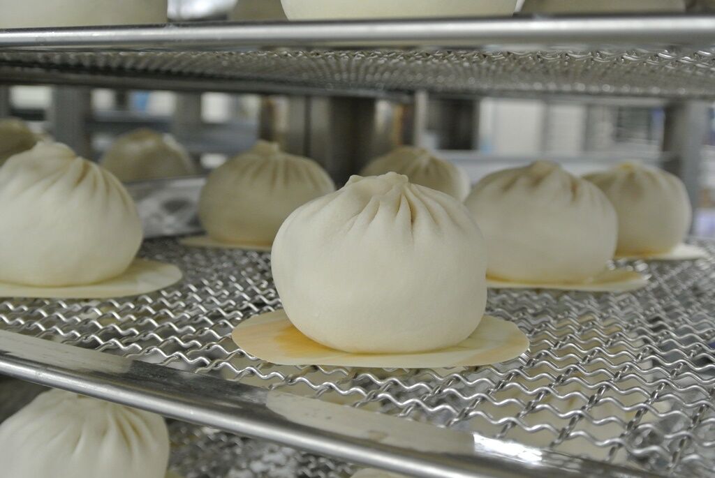 そして蒸した後の「機械包み」の肉まん。(↓)