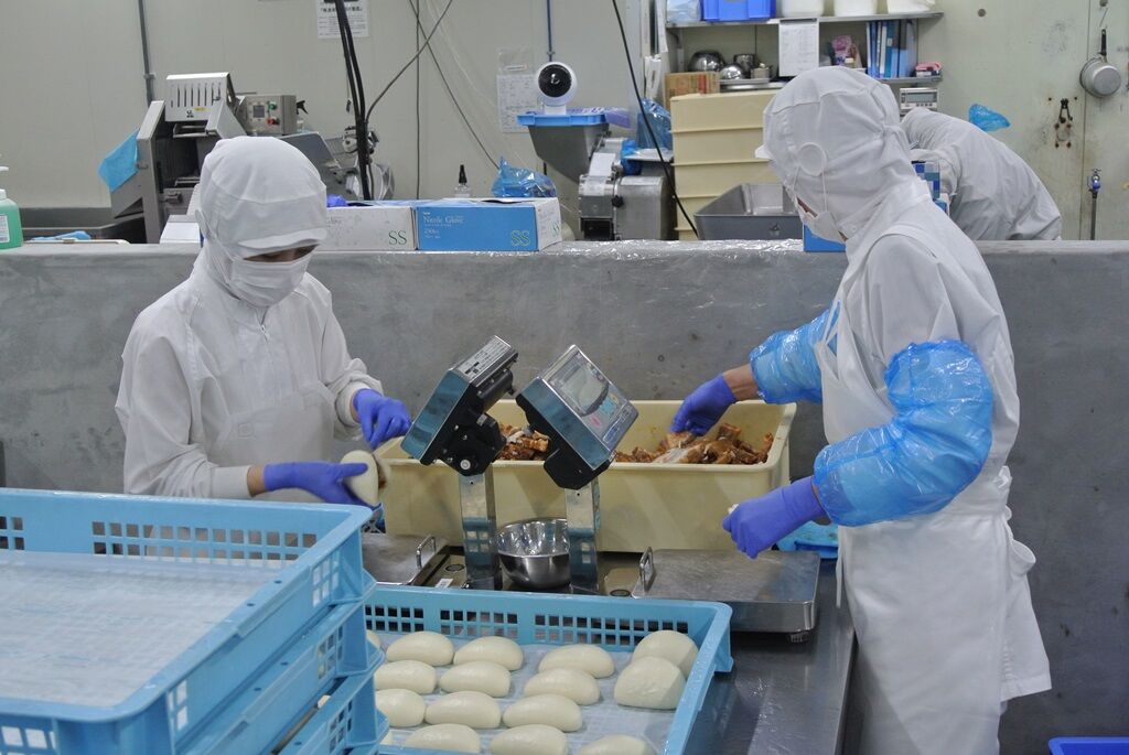 五十番食品では、肉まんは「機械包み」と「手包み」の両方の製造が出来ます。