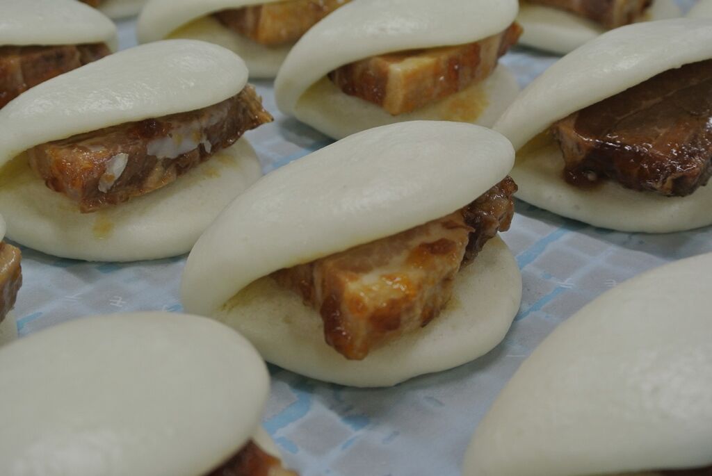 80グラムの「肉包子(ルーポーズ)」、120グラムの「ジューシー肉まん」は手包みです。
