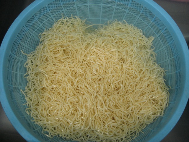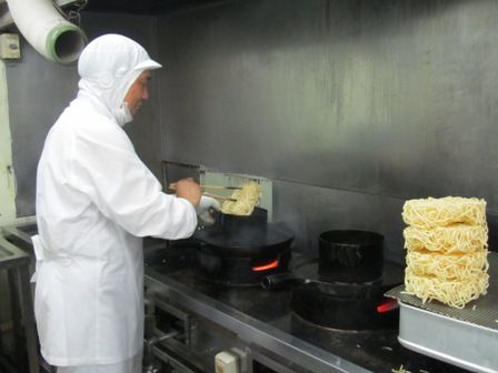 ← 伊府麺を揚げるのは、スポットクーラーがあるといえども、暑い夏はとっても大変な作業です