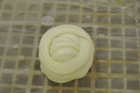 生地を伸ばしてクルッと巻くと、こんな形になります。(↓)