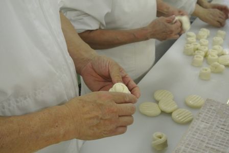 ホイカツは、パートさんたちがひとつひとつ手作業で製造しています。(↓)