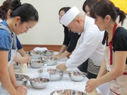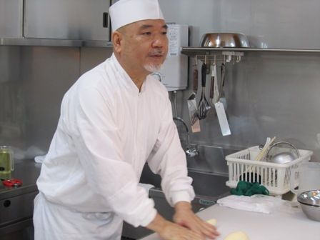 ← 餃子の皮の生地を練っています。来月から近所のお母様方を対象に、このクッキングスタジオで料理教室を開催する予定にしています。