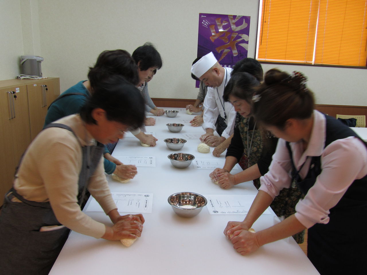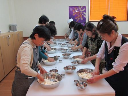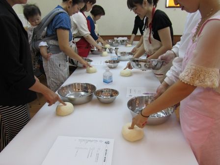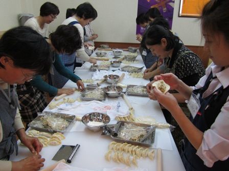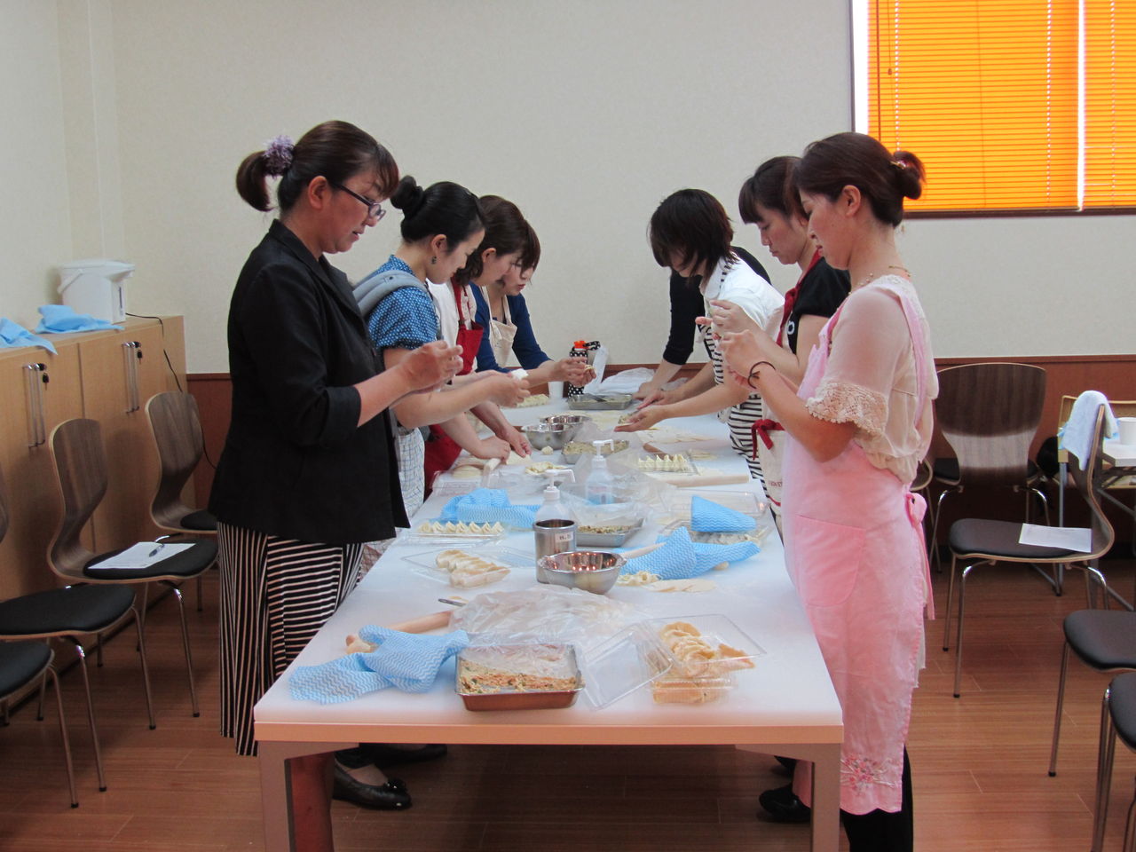 ← お母様方には肉まんを作っていただきました。肉まんの生地を練るところから、具を包むところまですべて手作りです