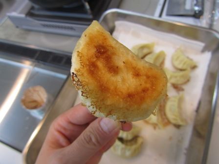 ← 最後は、美味しい焼き方の実演です。前にテレビ取材を受けた時に餃子の焼き方を大失敗をしてしまい、私から「今度同じような失敗をしたら、二度とテレビに出しませんよ