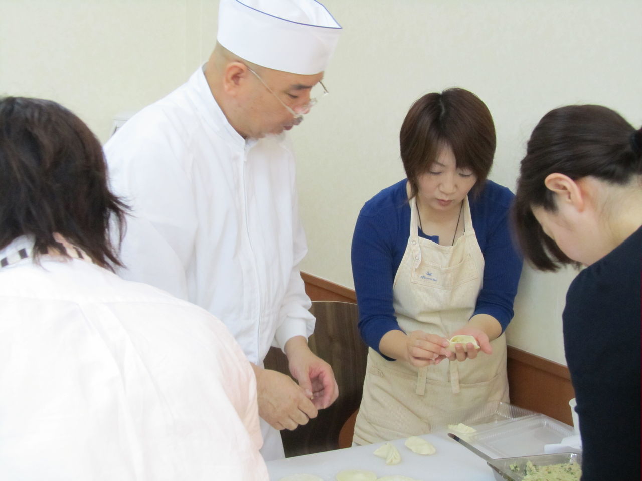 ← 第1回目は「皮から手作り 餃子教室」を開催予定なので、常務が練習で実際に作ってくれていました
