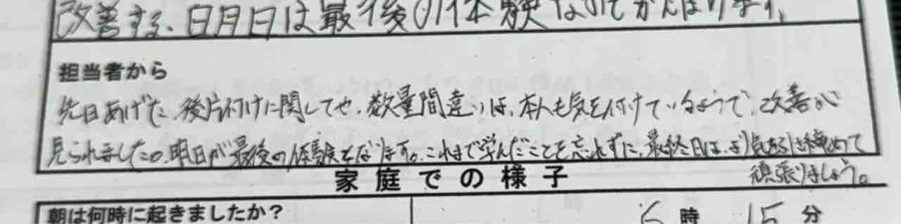 ・後片付けができていなかったり、数量間違いがあったりしたが、そこを指導したら本人も気を付けるようになり、それからはきちんとできるようになった。