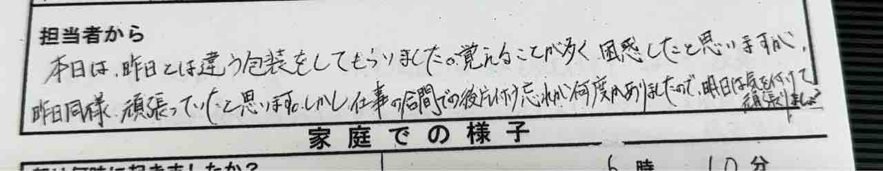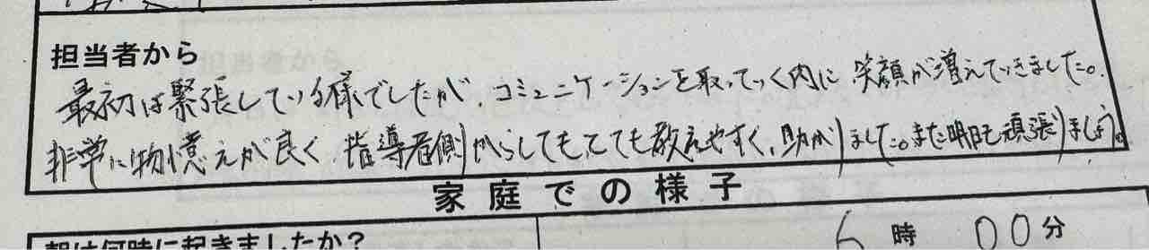 5日間Sくんに本当にしっかりと関わってくれて、実習日誌のコメント欄にも、毎日しっかりとコメントを書いてくれていました。