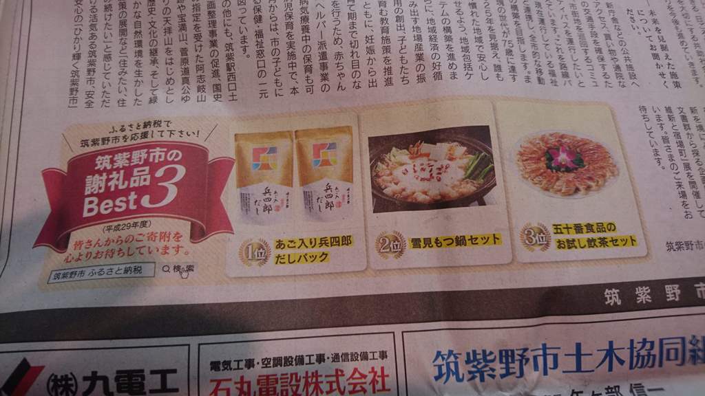 五十番食品は、筑紫野市のふるさと納税のお礼の品の中に入れていただいています。