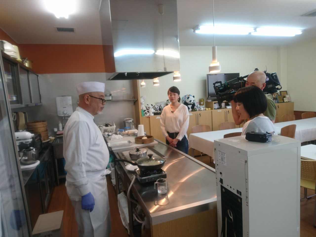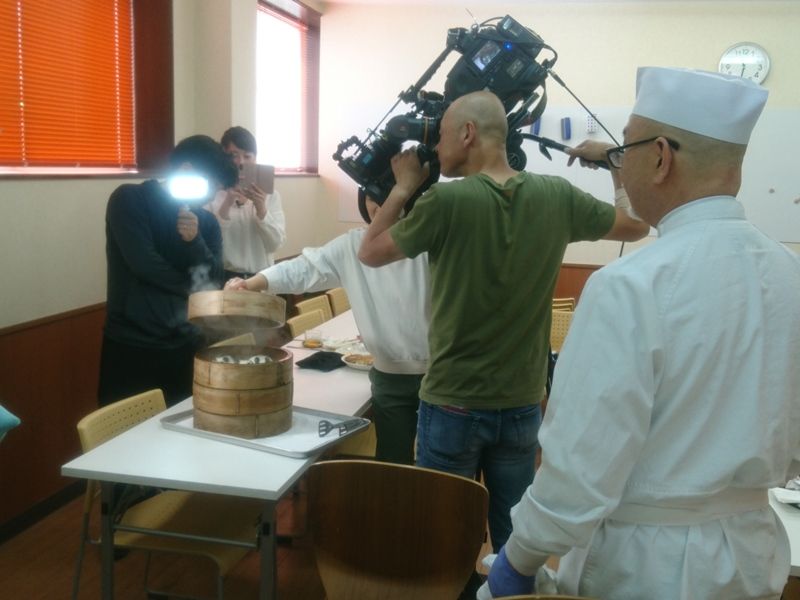 ↑ 常務が餃子を焼いているところもカメラで写されていました。