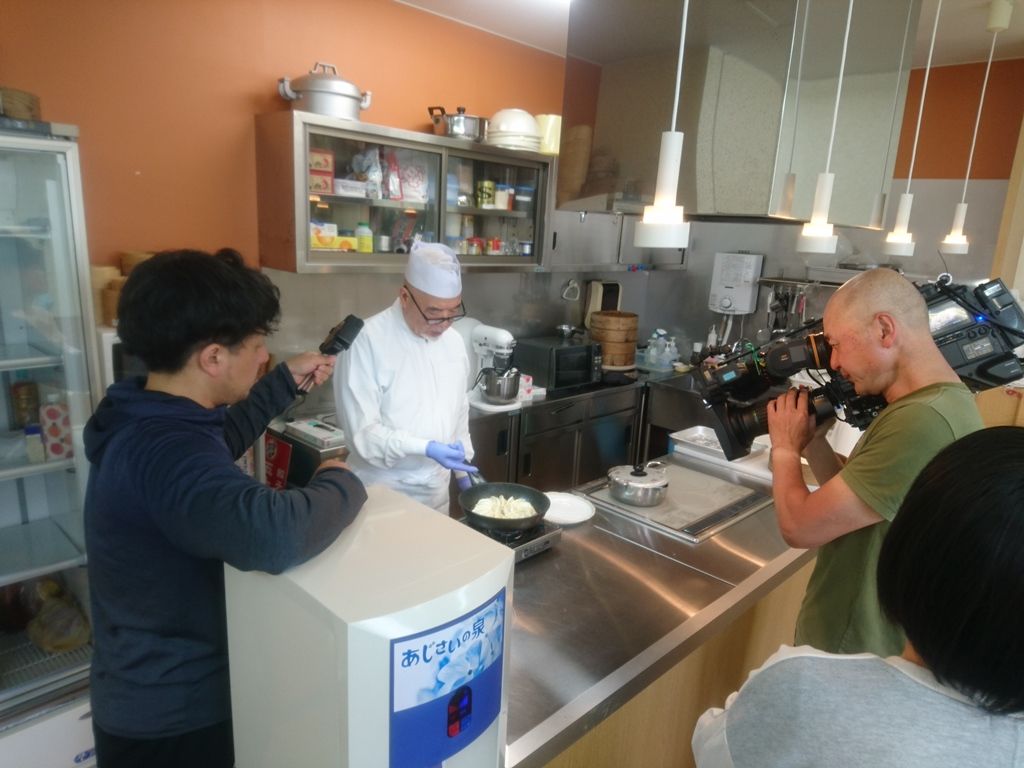 以前テレビ取材に来ていただいた時に、常務が緊張して餃子の焼き方を大失敗したことがあったので、私は内心ドキドキしながら見ていましたが、今回はまあまあ(笑)上手く焼いていました