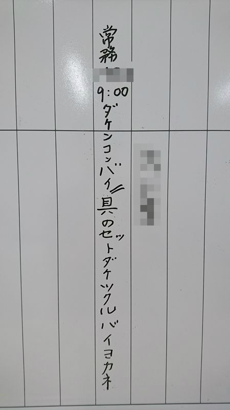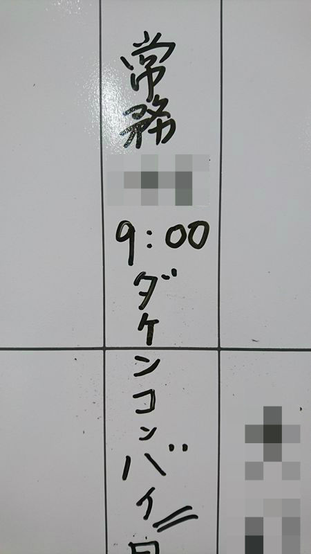 ↑ 会社のホワイトボードの予定表には当初こう書かれていましたが、そのあと次のように書き換えられていました。