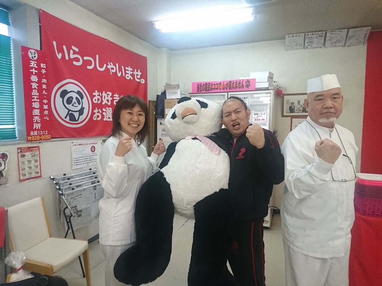↑ 最後にパンダ店長と常務も一緒にファイティングポーズで写真を撮っていただきました
