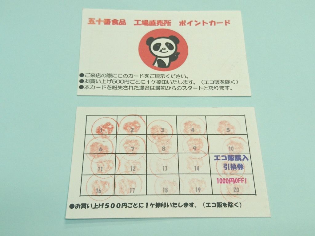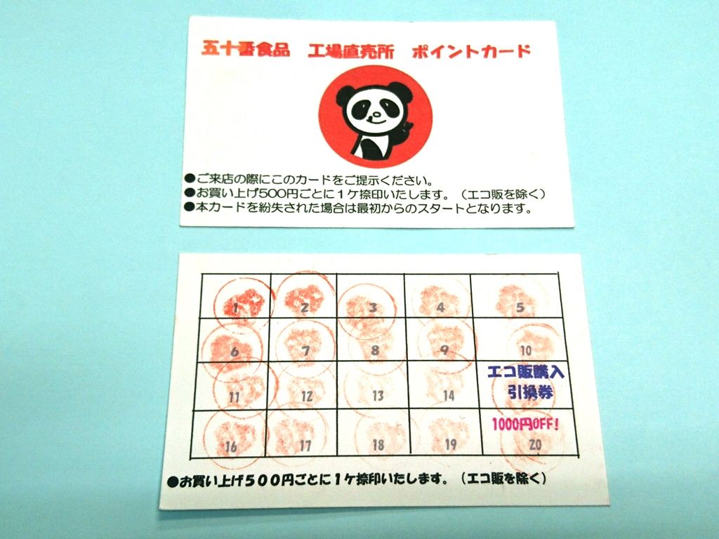 五十番食品の工場直売所にはポイントカードがあります