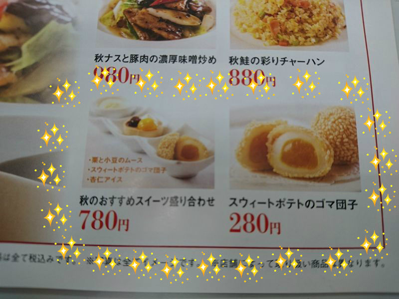 ↑ 単品メニューの中にも「スウィートポテトのゴマ団子」の名前で、「秋のおすすめスイーツ盛り合わせ」の中にも3品の中の1品に入れていただいていました